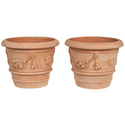 Biscottini Set med 2 terrakottakrukor 30x25 cm - Planteringslåda - Planteringskärl för utomhus- och inomhusbruk - Handgjord terrakottakruka - Frostbeständig kruka - Trädgårdskruka - Stora rund krukor