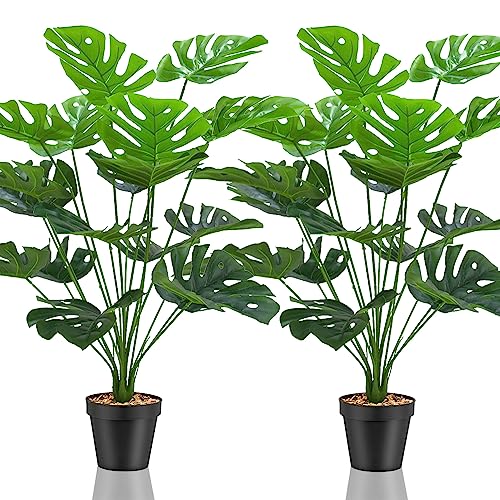 AIVORIUY Konstgjorda växter i krukor stora falska trägolv falska tropiska växter dekorativ växthus krukväxt hög för hem kontor vardagsrum dekor inomhus trädgård utomhus (75 cm stor Monstera Palm)
