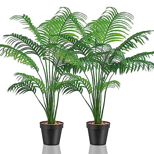 Lighterday Uppsättning av 2 falska växter konstgjorda växter inomhus dekorativa stora falska växter konstgjorda palmträd höga plastväxter för kontor hem inomhus utomhusdekor (2 krukor med konstgjorda