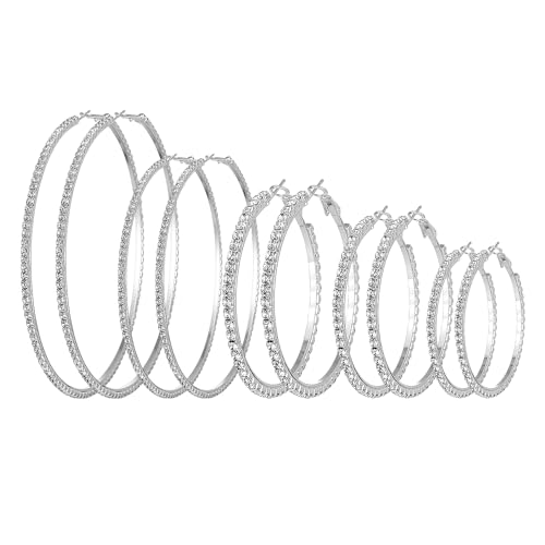 Diamday Stora ringar, örhängen i rostfritt stål, ringörhängen för kvinnor, flerfärgade, strass, söta huggies-örhängen, smyckesset, 35 mm/40 mm/50 mm, Strass Rostfritt stål Silver