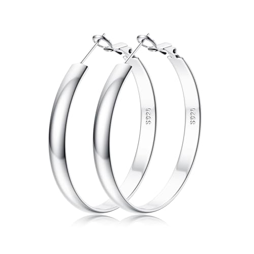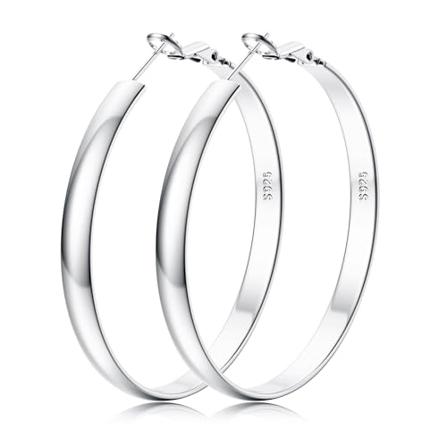 Deyanse Stora silver kreoler örhängen för kvinnor, vikbara creoler silver 925 stora, allergivänliga polerade örhängen, kreoler, 40/50/60 mm diameter rund cirkel oändliga örhängen, tunna stora kreoler