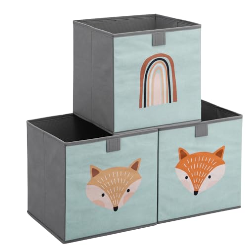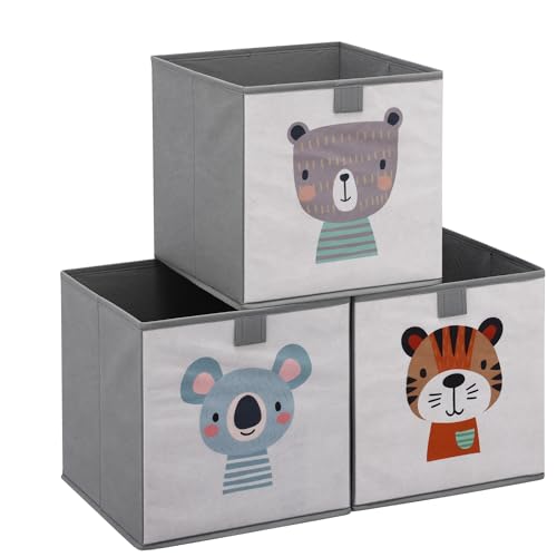 Navaris barn Storage Box 3 Set - Hylllagring 28 x 28 x 28 cm Toy Box - 3x Toy Box Foldbar - Animal Motiv Boxes With Handle