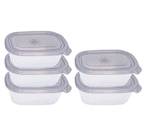Små Matlådor med Lock (5-pack, 500ml) - BPA-fri Plast Förvaringslådor med Lock - Stapelbara, Mikrovågs- och Fryssäkra Matlådor för Matförberedelse och Kylskåpsorganisering (Gray-Lids-5Pcs)
