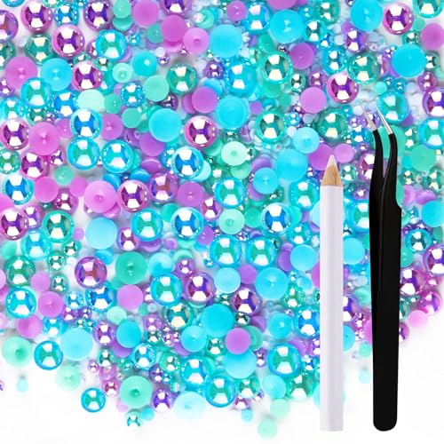 ASTARON 50 g blandade strasstenar med platt baksida, halvpärlor för pyssel, blandad storlek 3–10 mm, strasstenar med platt baksida för koppar, nagelkonst, skor (blå, lila, grön)