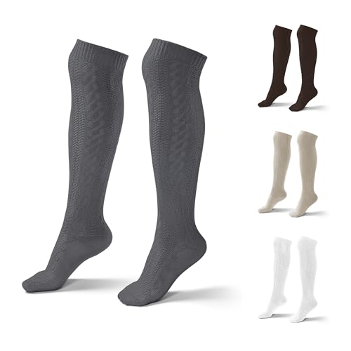 Atforna herr och dam, långa kostymstrumpor, knälånga dräktsstrumpor, av bomull för Oktoberfest och andra festligheter, 1-pack, storlek 35 till 50, Mörkgrå, 43-46 EU