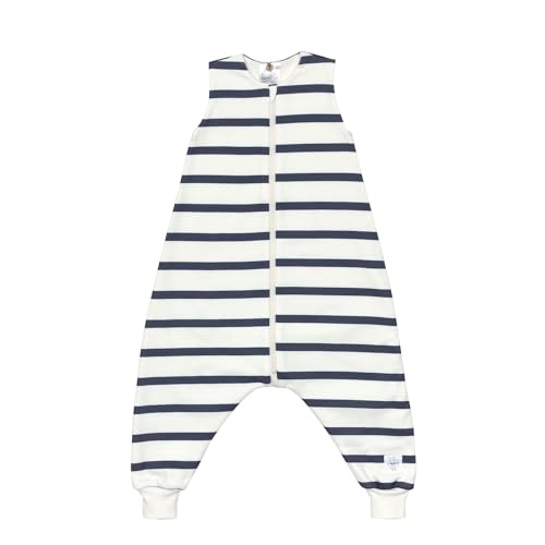 Casual barn sovoverall ärmlös 1,0 tog andas av ekologisk bomull GOTS certifierad/sovtröja randig milky/marinblå, storlek 86/92