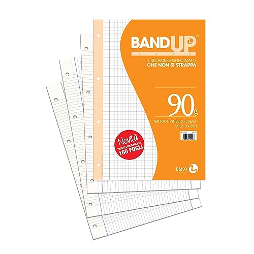BM BeMore – A4 bandup delar med förstärkt band – Q linjering – 5 Mm rutor med marginaler för elementära – prisvärd storlek på 160 ark – 90G/Mq-papper – 0122257