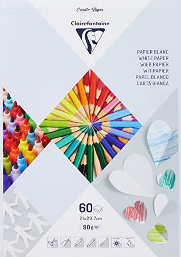 Clairefontaine – Ref 97241C – PaperTouch rit- och målningspapper (paket med 60 ark) – A4 (210 x 297 mm) i storlek, 90 gsm papper – lämplig för pennor, pennor, filtspetsar – vit