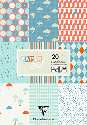 Clairefontaine - Ref 95240C - PaperTouch pappersblock (20 pappersark) - A4 (210 x 297 mm) i storlek, 200 gsm papper, 10 mönster ingår, 2 etiketter - regn