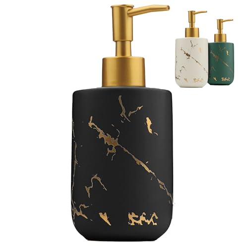 JJ PRIME keramisk dusch 400 ml | Marmorliknande pump | kök tvål badrumsflaskor | handtvätt dispenser (svart) en storlek