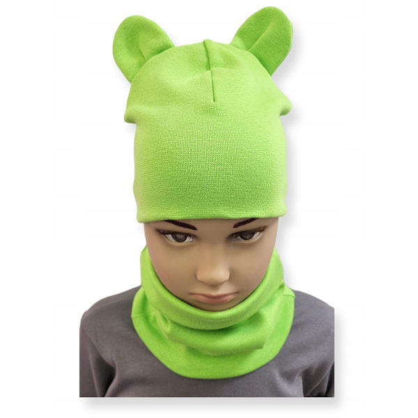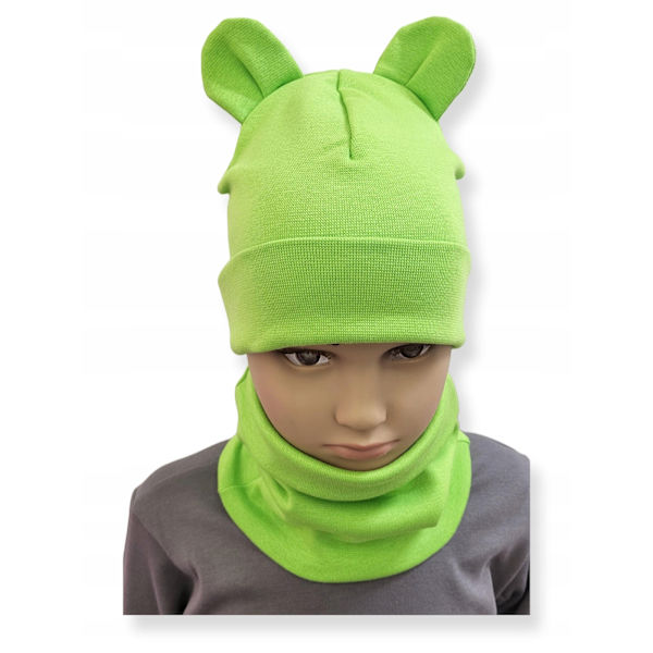 Set Hatt + Halsduk 92-98-104 för barn med öron storlek 46-50 grön