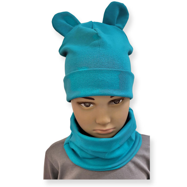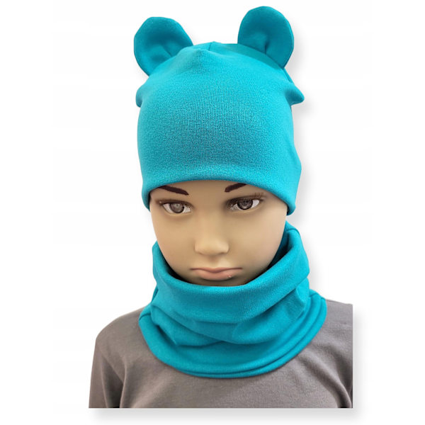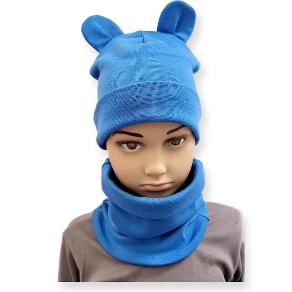 Set hatt + halsduk för barn med öron storlek 52-56 blå