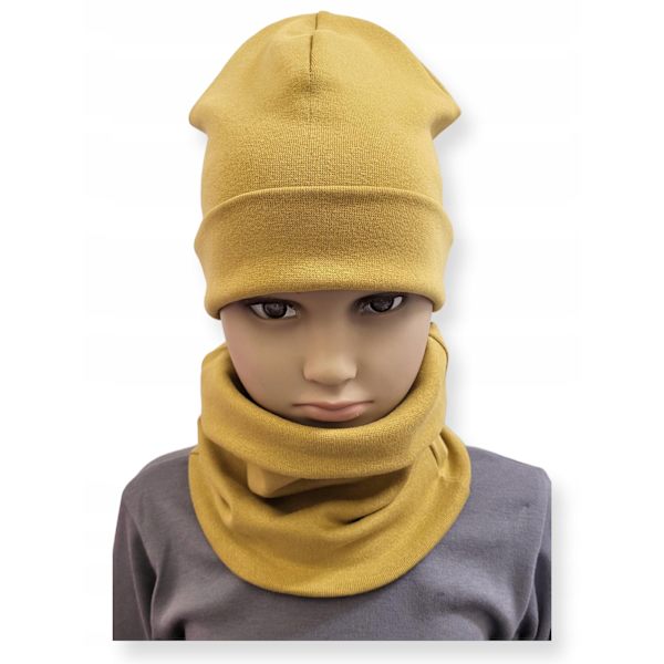Set Hatt + Halsduk barn storlek 52-56 dubbel Ocker