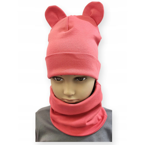 Set med hatt och komin för barn med öron storlek 52-56 korall