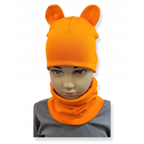 Set med hatt och halsduk för barn med öron storlek 52-56 orange
