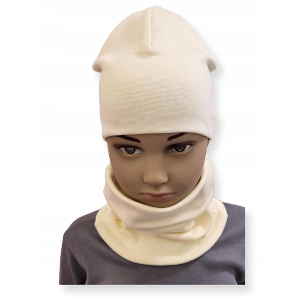 Set hatt + halsduk barn storlek 52-56 dubbel ecru