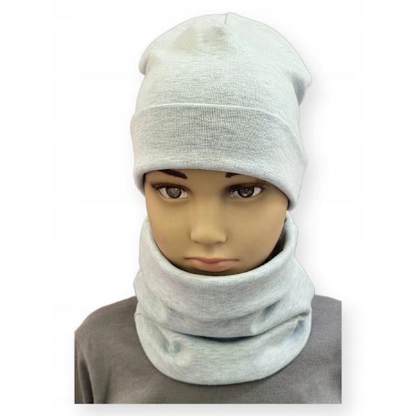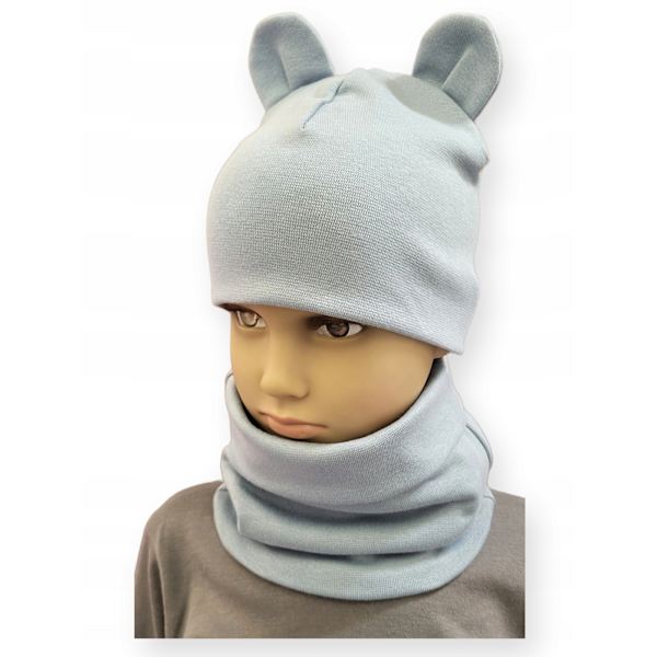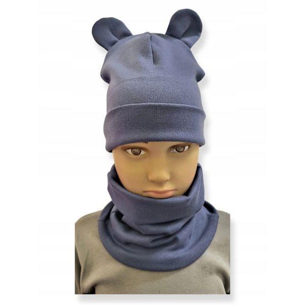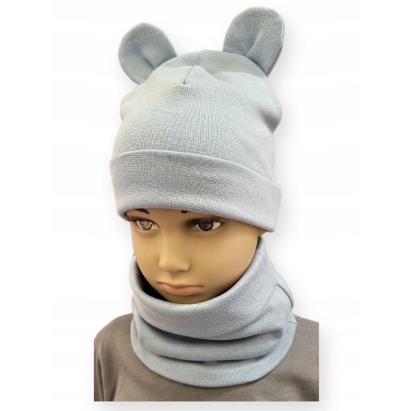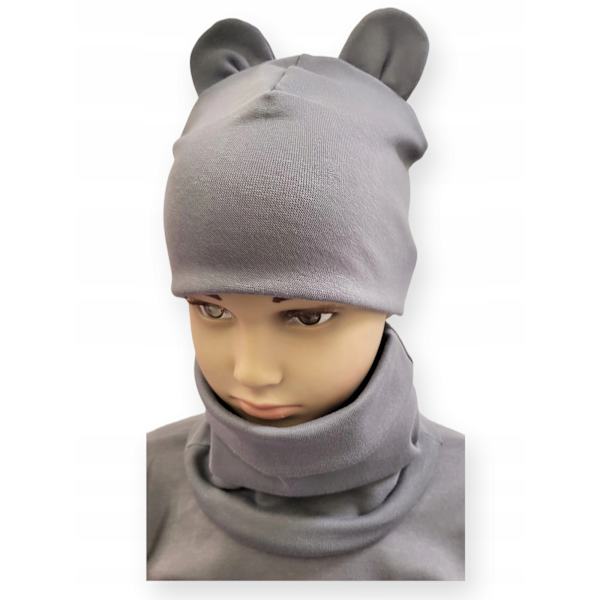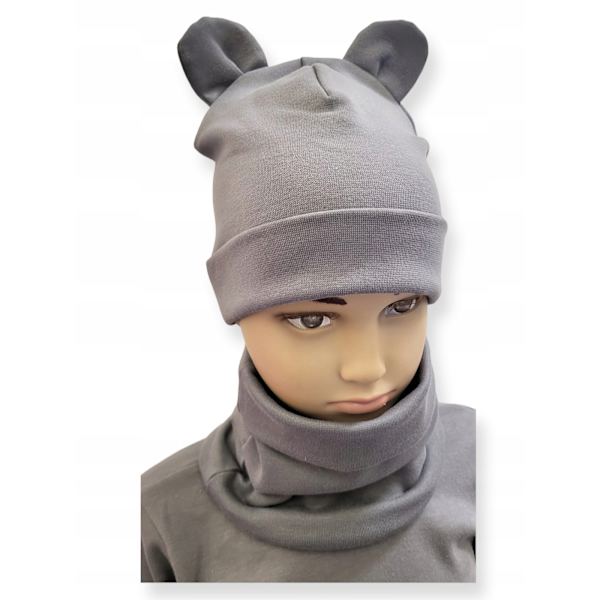 Set Hatt + Halsduk 74-80-86 för barn med öron storlek 40-44 Grå