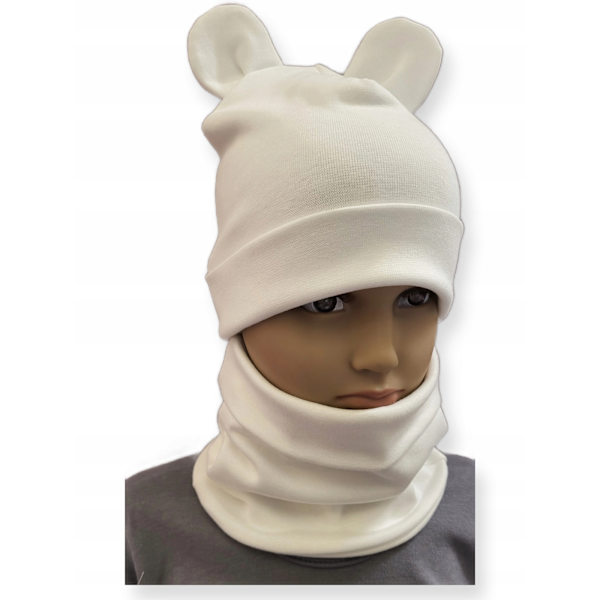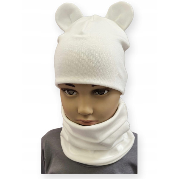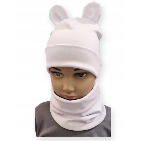 Hatt- och halsduksset för barn med öron storlek 52-56 vit