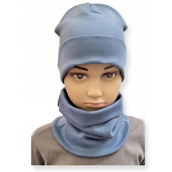 Hatt- och halsduksset för barn, storlek 52-56, dubbel, blå