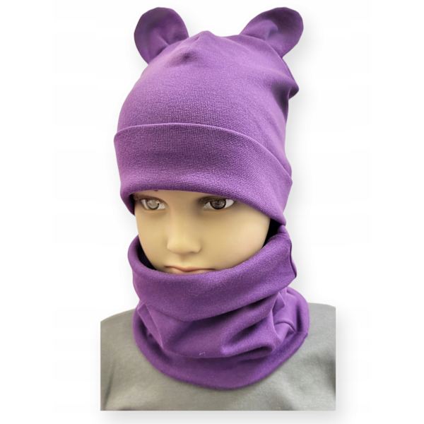 Set med hatt och halsduk för barn med öron storlek 52-56 lila