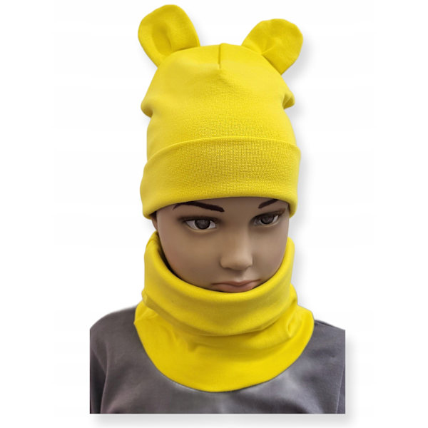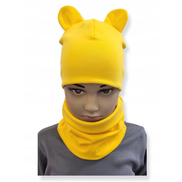Set Hatt + Halsduk för barn med öron storlek 52-56 gul
