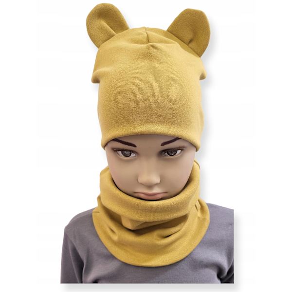 Sett hatt + halsduk för barn med öron storlek 52-56 ocker