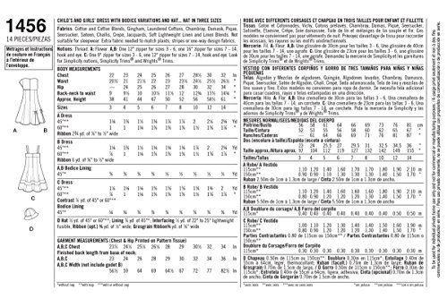 Enkel sömnadsmönster 1456: Klänning för barn och flickor med livstycket variationer och hatt, storlek K5, papper, vit, (7-8-10-12-14)