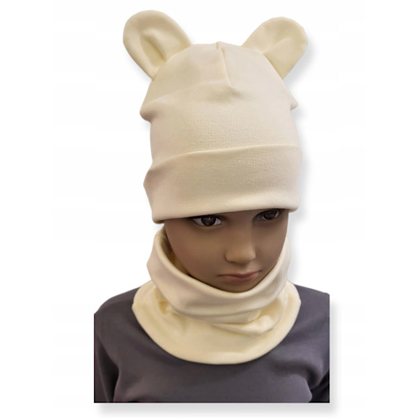 Set Hatt + Halsduk 74-80-86 för barn med öron storlek 40-44 crem