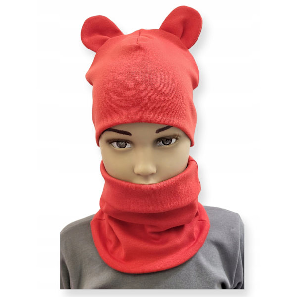 Set Hatt + Halsduk 56-62-68 barn med öron storlek 34-38 röd