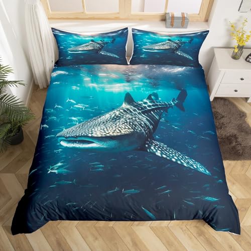Haj, påslakan, val, haj, sängkläder, hav, marin, tema, täcke för pojkar, flickor, barnrum, dekor, hav, undervattensvärld, lätt, överkast, enkel storlek, med 1 örngott, pojkar