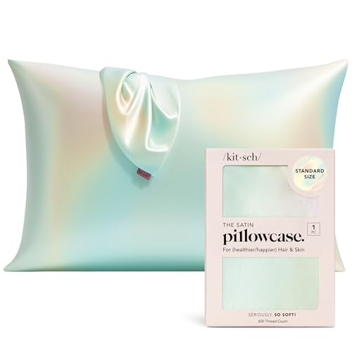 Kitsch Satinörngott med dragkedja för hår och hud, mjukare än silkesörngott i queen-storlek, släta örngott, maskintvättbara, rynkfria, kylande satínörngott, standardstorlek 19"x26" (Aura)