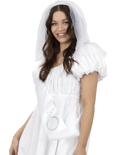 Smiffys Brudslöja & skärp kit, vit med diamantring, möhippa maskeradtillbehör, möhippa möhippa outfit set, en storlek