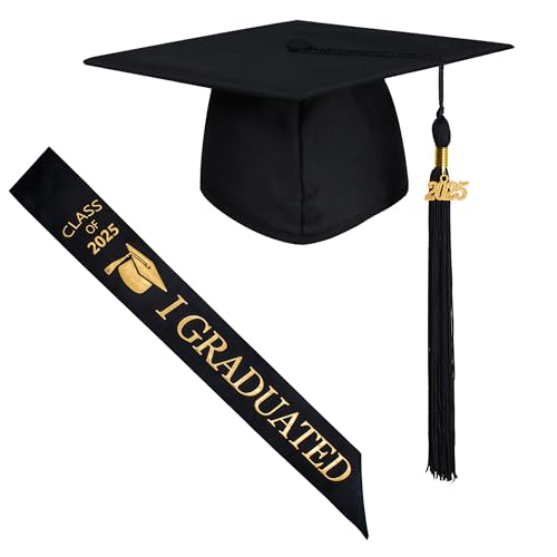 GraduationMall 2024 Examensmössa och skärp för vuxen unisex examensceremoni festgåvor 2 färger, Svart, en storlek