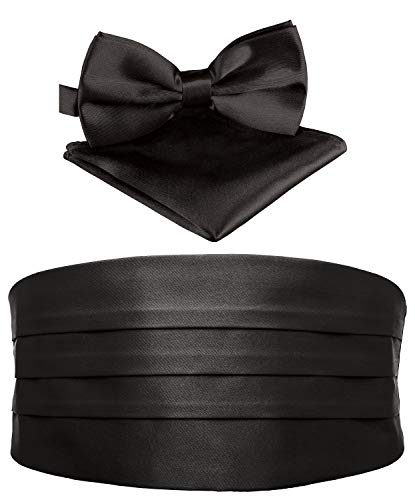 BomGuard Herrlinning med fluga och näsduk för smoking skjorta, set om 3 skärp, svart, En Storlek