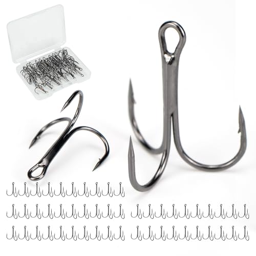 Piscorush Fiske diskantkrokar hög kolstål fiskekrokar klassisk rund böjning skarp solid trippel taggad fiskkrok fiskedrag (svart, storlek 8, 50-pack)