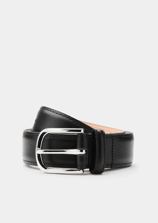 Skultuna Skärp läder svart med silverpläterad mässing (Storlek: 105cm)