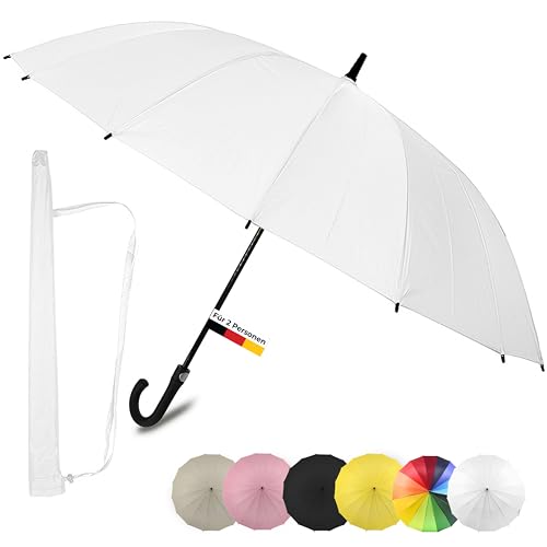Sternenfunke Paraply vitt stort XXL Ø 120 cm stort paraply ädelt, stabilt och stormsäkert för bröllopet som brudparaply eller parparaply, kvinnor och män, automatisk tryckknapp, Vit, 120/XL