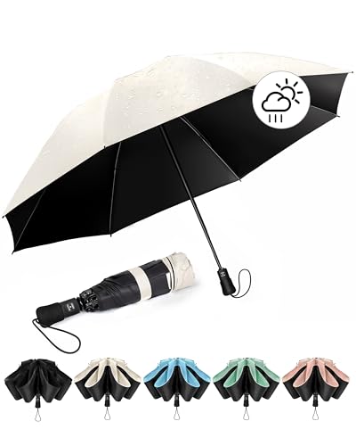 Chakipee Paraply stort stormsäkert kompakt resa för kvinnor och män – automatiskt upp och ner på fickparaply bärbart UV-paraply, fickparaplyer svart 210T beläggning 97 cm spännvidd 8 spröt, Beige, 97