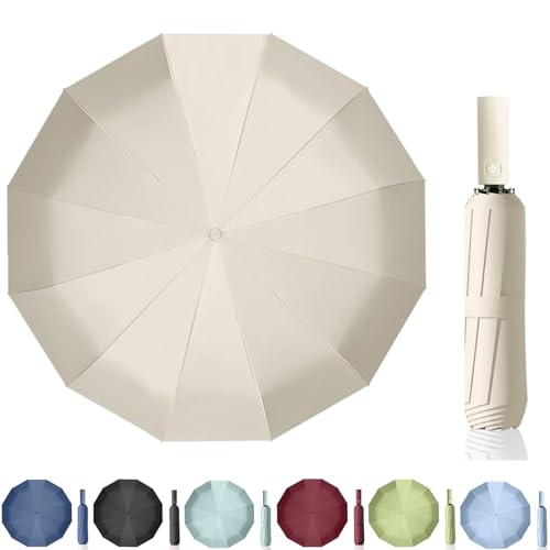 Maibar Hopfällbart paraply stort 24 ribbor vindtätt vikbart kompakt vattentätt hopfällbart paraply med automatisk öppning och stängning, A-Beige, Grande, Klassiskt