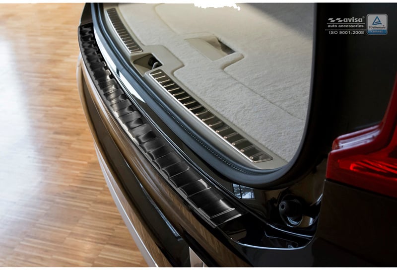 Avisa Matt svart rostfritt stål bakre stötfångarskydd kompatibelt med Volvo XC60 II 2017-2021 & FL 2021- inkl. R-Design & Plug-in-Hybrid 'Ribs'