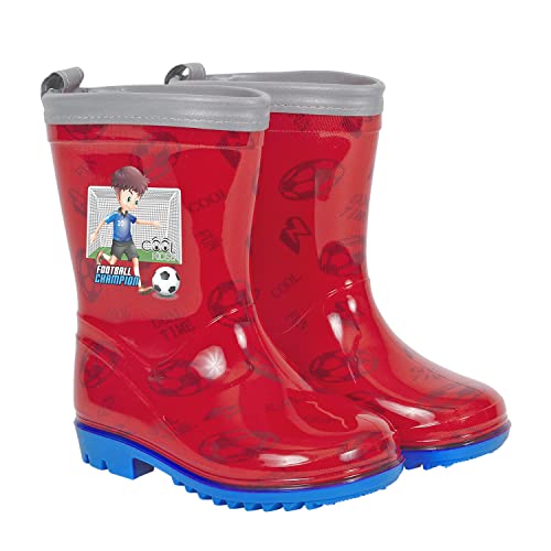 PERLETTI Stövlar för Pojkar Röd Fotbool - Regnstövlar Pojke Vattentäta med Blå Anti Slip Yttersula - Gummistövlar för Barn med Reflekterande Detaljer PVC Material - 5 Storlek (Fotboll, EU 28/29)