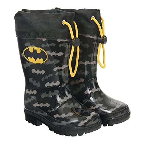 PERLETTI Gummistövlar Batman för Barn Fladdermus - Regnstövlar Svart med Anti-slip Yttersula PVC Material Pojke - Stövlar Superhjältar med Dragsko för Småpojkar - 4 Storlek (24/25 EU, Svart)