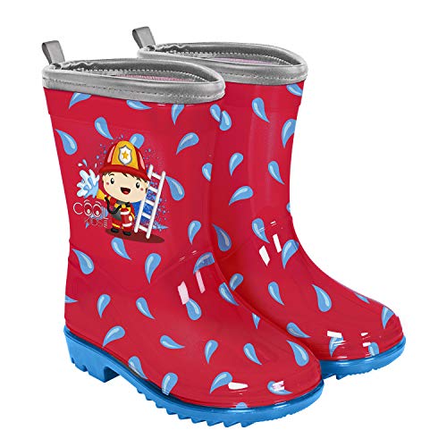 Gummistövlar Barn Röd med Brandman Släcker Elden - Regnstövlar Pojke Vattentäta med Blå Anti Slip Yttersula - Stövlar Reflekterande Detaljer PVC Material - 5 Storlek PERLETTI KIDS (Brandman, 24)