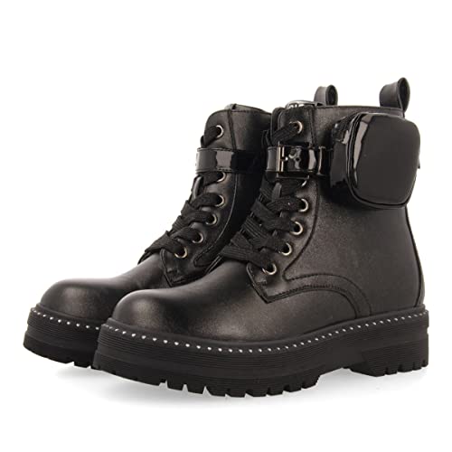 GIOSEPPO Svart spets upp stövlar och sidoprydnad för flicka och pojke leaca, Svart, 32 EU
