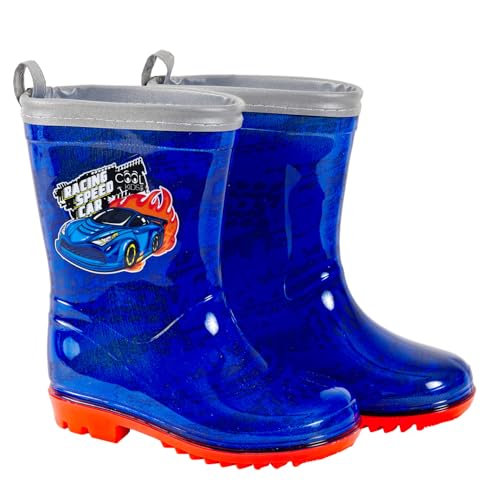 PERLETTI Gummistövlar Barn Blå med Racing Car - Regnstövlar Pojke Vattentäta Anti Slip Yttersula - Stövlar Pojkar 3 4 5 6 År med Reflekterande Detaljer PVC Material - 5 Storlek (Racing Car, EU 26/27)