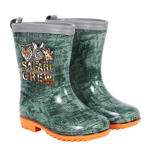 PERLETTI Regnstövlar Pojke Grön med Zebra Tiger - Gummistövlar Barn Vattentäta Apelsin Anti Slip Yttersula - Stövlar Pojkar med Reflekterande Detaljer PVC Material - 5 Storlek (Safari, EU 26/27)
