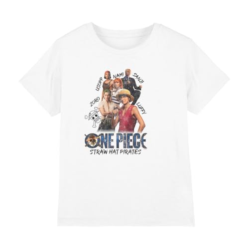 Netflix Boy's One Piece stråhatt pirat barn t-shirt, Vitt, 5-6 År