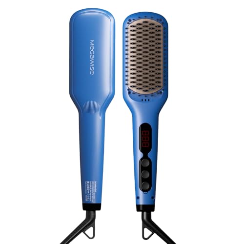 MEGAWISE Hair Straightener Ceramic Brush (Pink Gold) Anti-Scald Dual Voltage Flat Iron Hot Brush | Roterbar Cord |Auto Shutoff | anti-friszz |för alla hårtyper (Tomatrött)