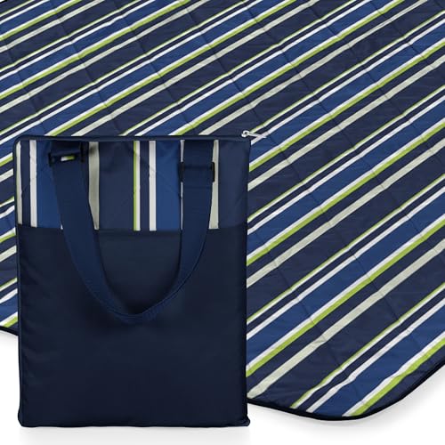 Picknicktid ONIVA – ett varumärke – Vista picknickfilt för utomhusbruk – strandfilt – campingfilt, (blått randigt mönster med marinblå utsida)