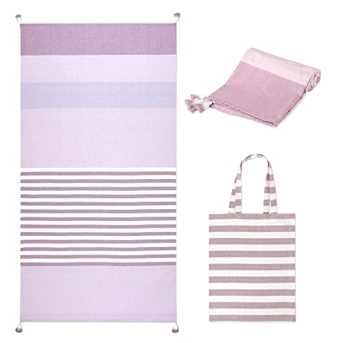 Folkulture turkisk strandhandduk för vuxna med strandväska 102 cm x 183 cm badhanddukar, strandfilt eller överdimensionerade sandbeständiga strandhanddukar, 100% bomull snabbtorkande, lätt och stor,